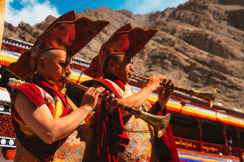 Rodeada por majestuosas montañas y paisajes áridos, Ladakh es un refugio espiritual y cultural donde los monasterios antiguos cobran vida durante los vibrantes festivales de máscaras, llenos de colores y rituales budistas.