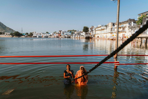 Pushkar is one of India's holiest cities, and during the festival, many pilgrims flock to the famous Pushkar Lake, where Brahma, the creator god, is believed to have dropped a lotus flower, giving rise to this sacred lake. On the eve of the Kartik full moon, thousands of worshippers perform a ritual bath in its waters, seeking to purify their spirits and receive blessings. This act of devotion creates a fascinating contrast to the vibrant camel fair, reflecting the unique combination of the spiritual and the earthly in daily Indian life.